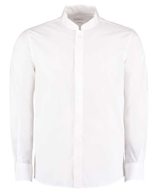 This men’s long sleeve shirt has a mandarin collar and concealed placket. Making it ideal for a vast range of businesses.