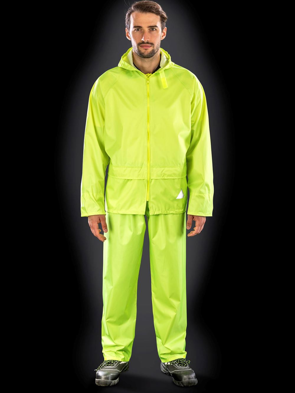 - Heavyweight with taped seams,Hood with tear release adjuster,Full front zip fastening,2 spacious fron pockets to jacket and 2 access pockets to trousers,Inner storm cuffs
