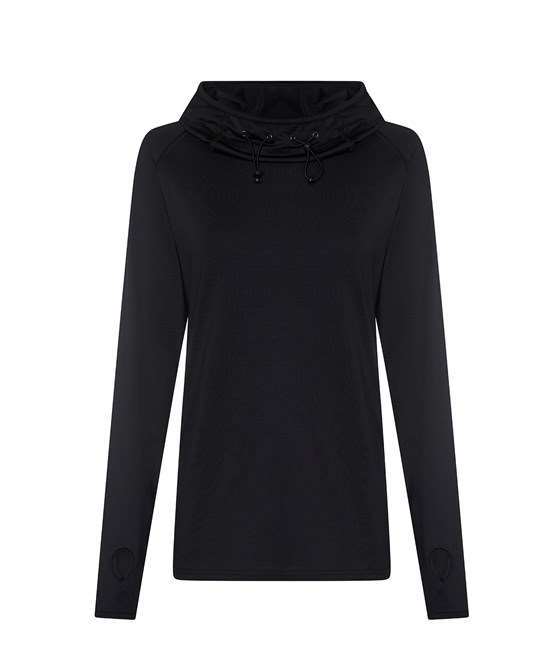 • Blended fabric containing elastane that provides stretch for comfort and a great fit Cowl neck style hood Active fit and ideal for layering Raglan sleeve design creates ease of movement Reflective elements on toggled hood for lowlight conditions Reflective tab on back of neck Flat lock stitching detail Thumb hole opening Simple tear off label makes it perfect for rebranding To fit chest: 8 10 12 14 16